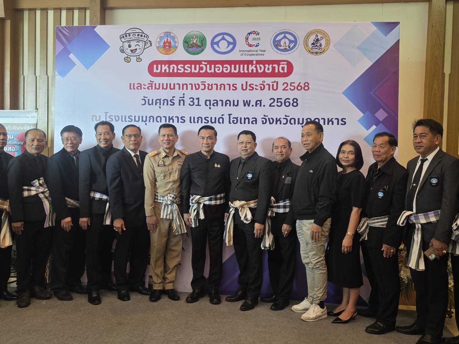 เมื่อวันที่ ๓๑ ตุลาคม ๒๕๖๘ เวลา ๐๙.๓๐ น. ณ โรงแรม มุกดาหาร แกรนด์ โฮเทล อำเภอเมือง จังหวัดมุกดาหาร นายทรงศักดิ์ ทองศรี รัฐมนตรีช่วยว่าการกระทรวงมหาดไทย เป็นประธานในพิธีเปิด “มหกรรมวันออมแห่งชาติ และสัมมนาทางวิชาการ ประจำปี 2568” ซึ่งจัดขึ้นภายใต้แนวคิด “พลังสหกรณ์ ส่งเสริมความมั่นคงทางการออมให้คนไทย” ณ จังหวัดมุกดาหาร “ประตูสู่อนุภูมิภาคลุ่มแม่น้ำโขง” โดยมีนายนวรญาณ บุญณราช ผู้ว่าราชการจังหวัดมุกดาหาร นายวิริยะ ทองผา สมาชิกสภาผู้แทนราษฎรจังหวัดมุกดาหาร นายชัยมงคล ไชยรบ สมาชิกสภาผู้แทนราษฎรจังหวัดสกลนคร นายวีระพงษ์ ทองผา นายกองค์การบริหารส่วนจังหวัดมุกดาหาร ดร.มะณู บุญศรีมณีชัย ประธานกรรมการชุมนุมสหกรณ์ออมทรัพย์แห่งประเทศไทย นายประวัติ แดงบรรจง รองอธิบดีกรมส่งเสริมสหกรณ์ นายอนันตชัย โคตรแสนลี ที่ปรึกษากรรมาธิการการที่ดินทรัพยากรธรรมชาติและสิ่งแวดล้อม หัวหน้าส่วนราชการ ผู้บริหารองค์กรปกครองส่วนท้องถิ่น ท่านกำนัน ผู้ใหญ่บ้าน ผู้บริหารเครือข่ายสหกรณ์ทั่วประเทศ เข้าร่วมงาน